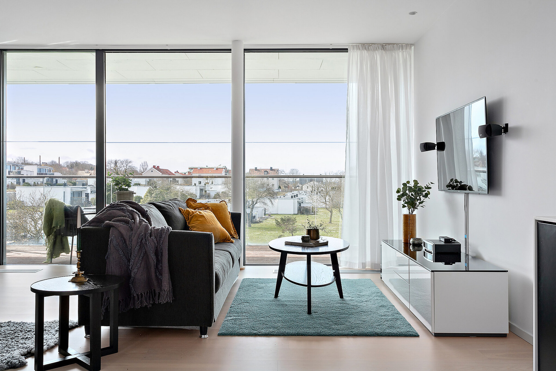 Välplanerat och smakfullt med påkostade materialval, där det noggrant utvalda inredningspaketet passar in i den sobra miljön och ingår i köpet.